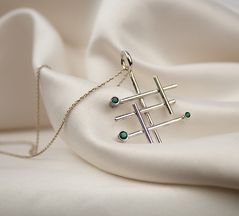 Deze handgemaakte zilveren hanger met toermalijn maakt deel uit van mijn collectie Kruispunten.
